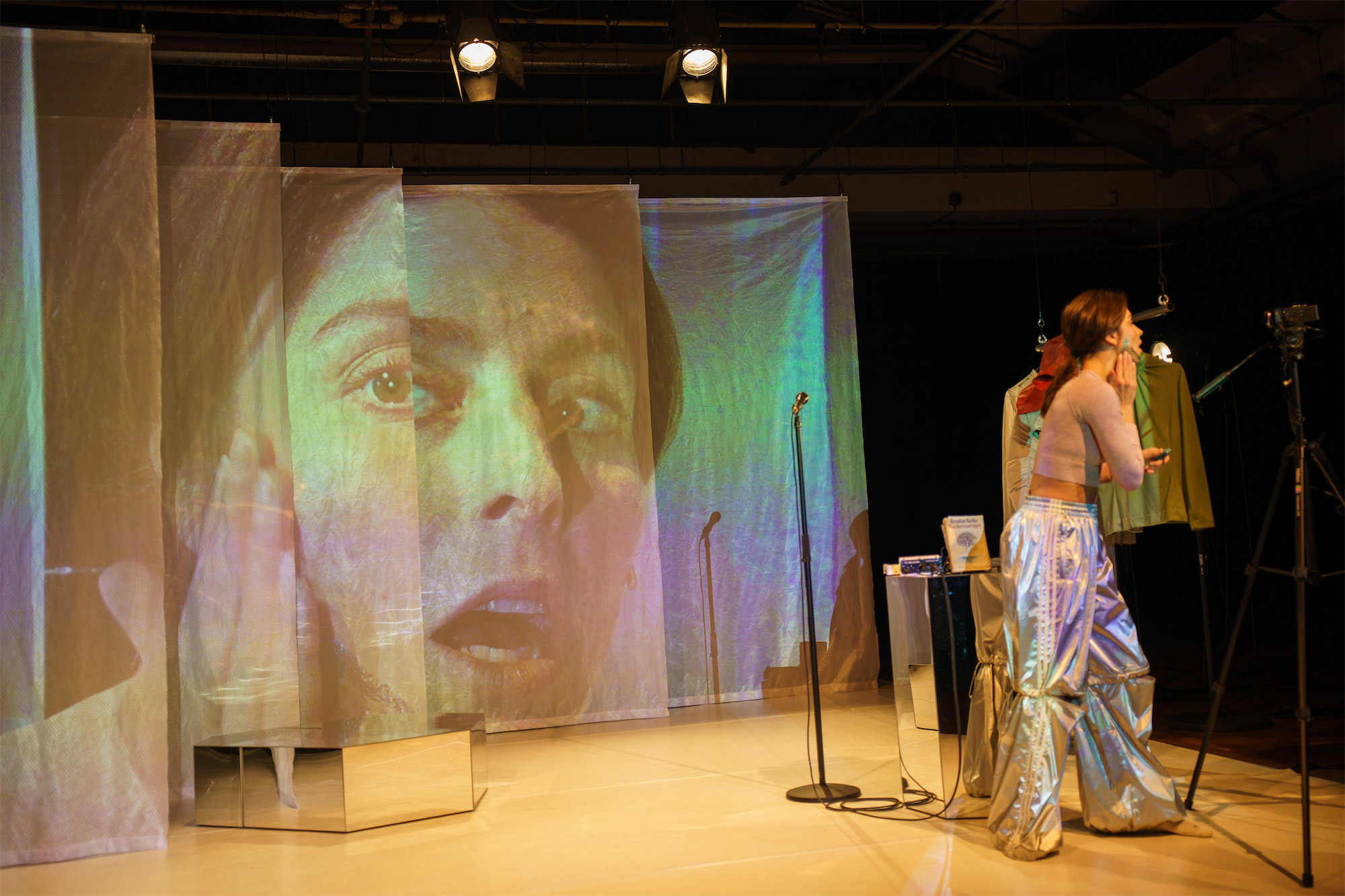 Het decor bestaat uit lagen transparant wit doek die zowel als projectiescherm als coulissen dienen in de verschillende scènes uit Barbins verhaal. Langzaam opent het podiumbeeld zich, parallel aan de groeiende zichtbaarheid van Barbin èn Marleen. De verplaatsbare objecten verschuiven de locatie — van klooster tot bed tot pridepodium — en geven, door het gebruik van spiegel, tegelijk een klinische al een clubachtige sfeer.