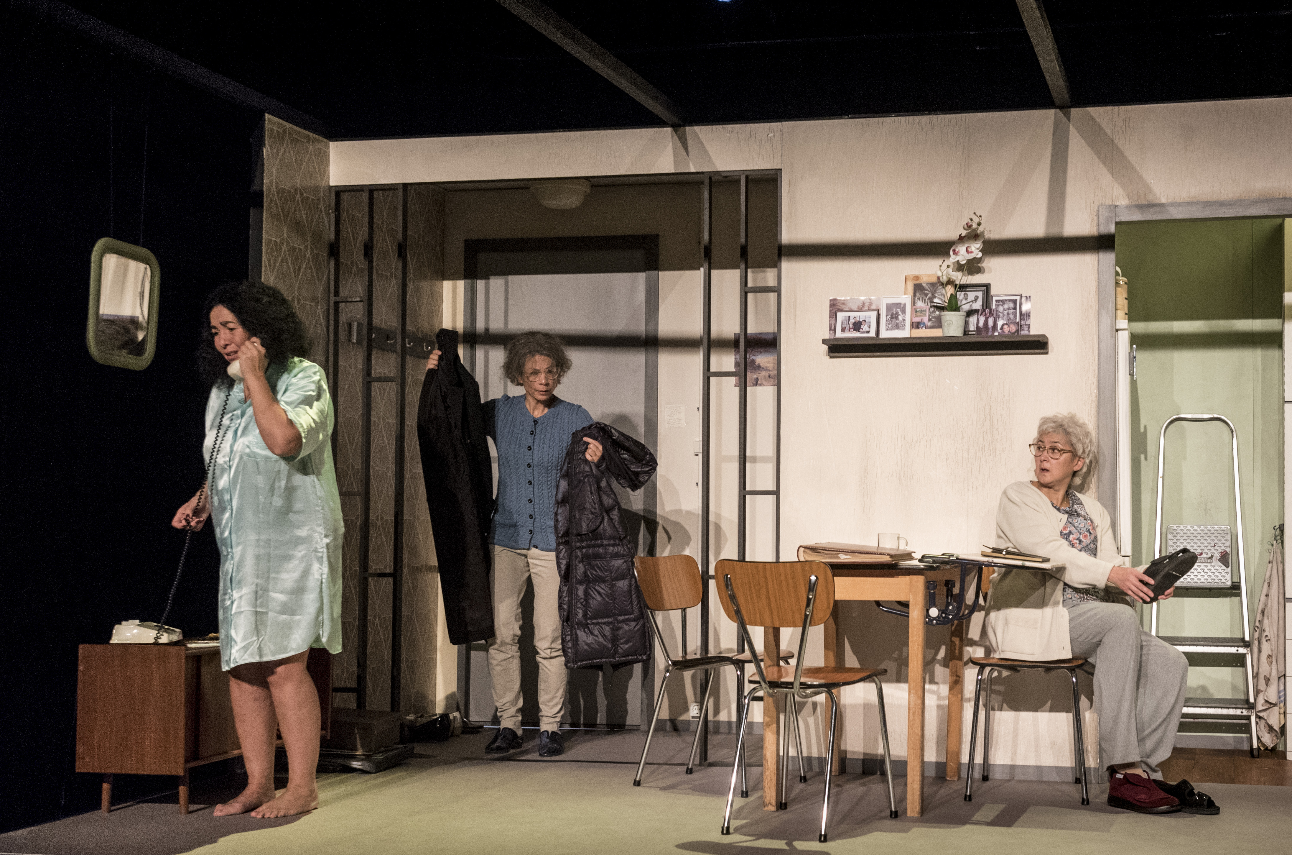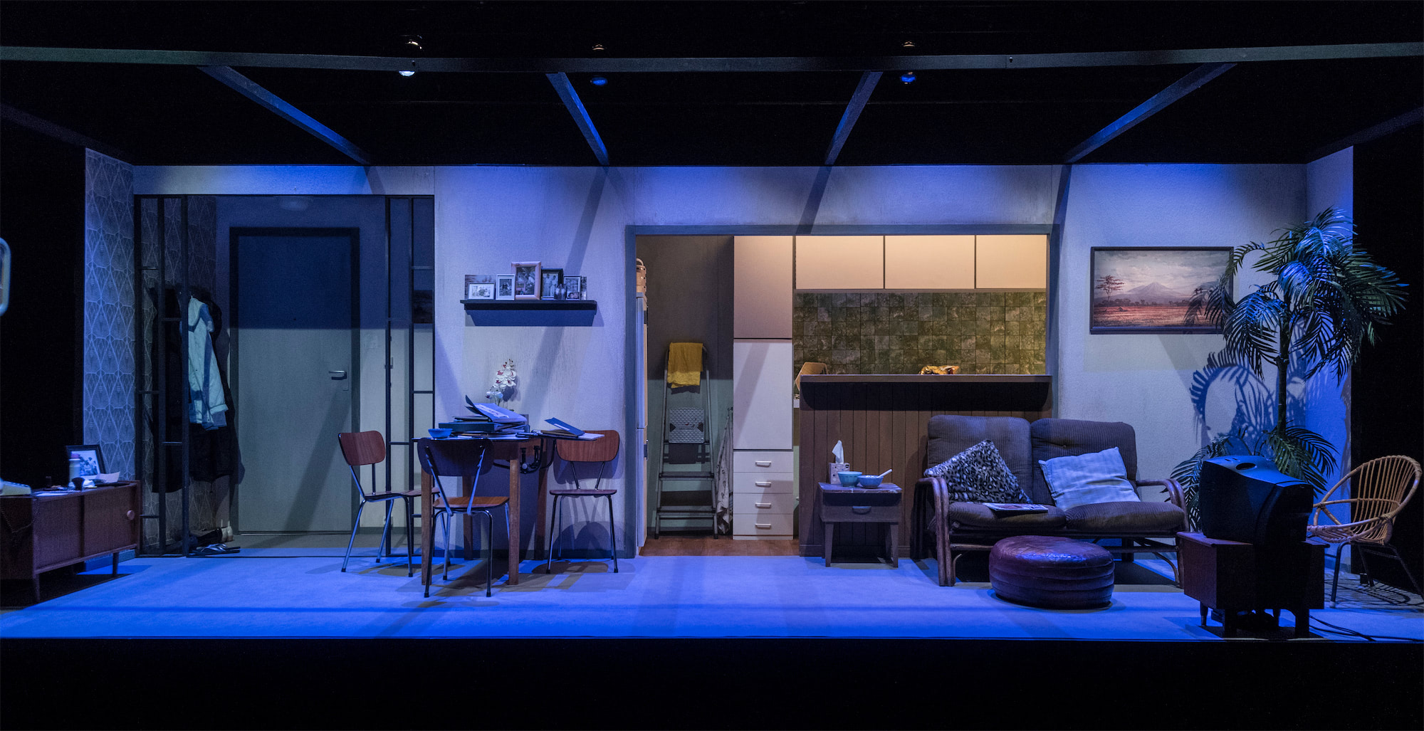 Het decor is een (verhoogde) doorsnede van de flat waarin de zussen wonen. Omdat het lijkt alsof de buitenmuur eraf gehaald is, krijg je het gevoel dat je bij ze in de kamer zit.