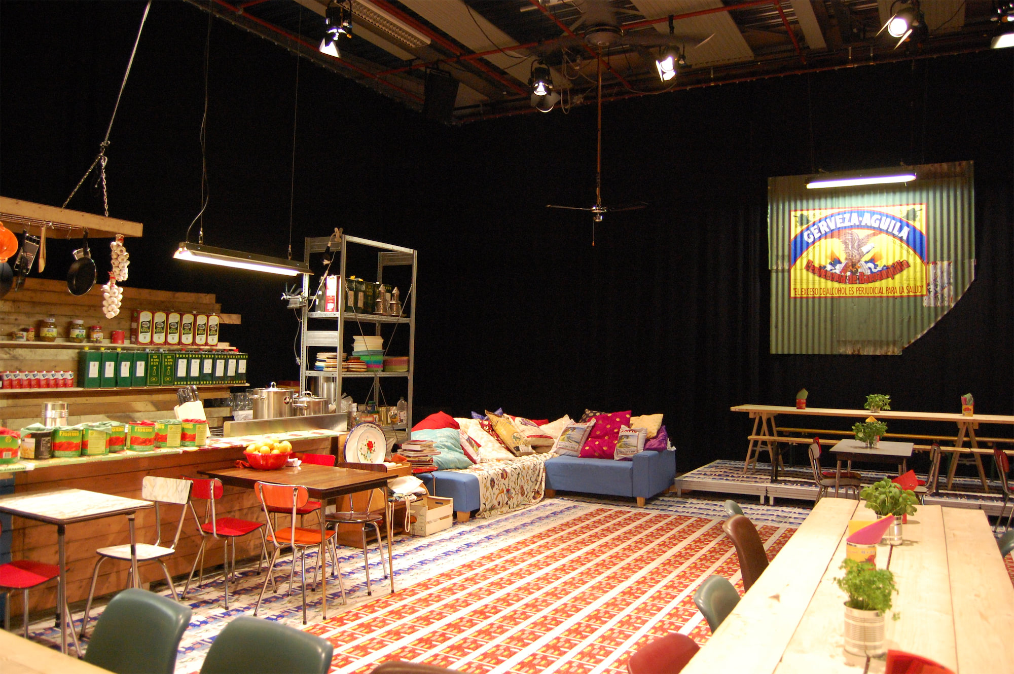 Voor het decor is uitgegaan van een illegaal thuisrestaurant. Met elke repetitie is het decor gegroeid tot een wereldkeuken met o.a. sloophout, misdrukken van verpakkingen en een muur van conservenblikken. Dit is de keuken waar de vrouwen spelen, daaromheen staan de tafels en stoelen voor ongeveer 120 bezoekers. Het eten dat klaargemaakt wordt tijdens de voorstelling, wordt na afloop samen met het publiekgegeten.