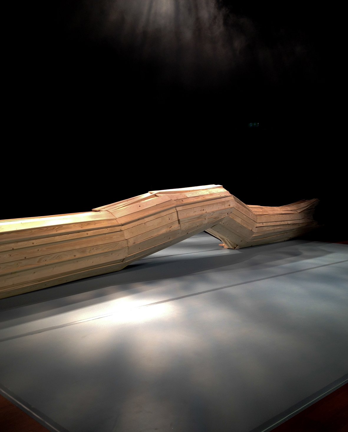 Het beeld bestaat uit een grote, liggende boomstam van onbehandelde balken. De boomstam is gemaakt van hetzelfde materiaal als iedere boom, maar in een nieuwe vorm. Net zoals het leven van het hoofdpersonage, dat met dezelfde onderdelen een nieuwe invulling moet krijgen.
