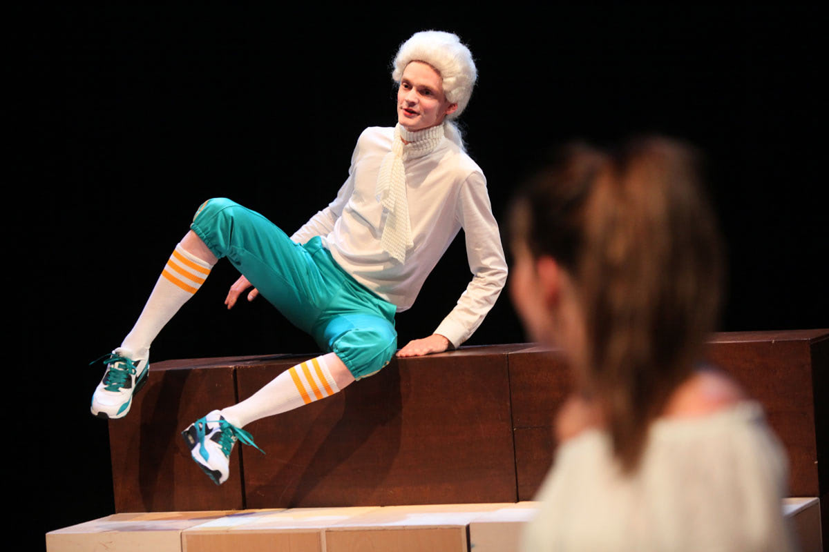 Zus van Mozart (7+) schetst het verhaal van Nannerl, het oudere zusje van Mozart, die net zo muzikaal is, maar door haar geslacht naar de achtergrond verdwijnt. Deze muziektheatervoorstelling is een ode aan de vergeten helden en vraagt op sprankelende wijze wie we aandacht geven en waarom.